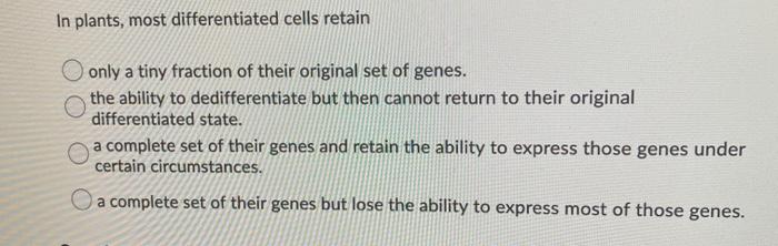 Solved In Plants Most Differentiated Cells Retain Only A Chegg Com